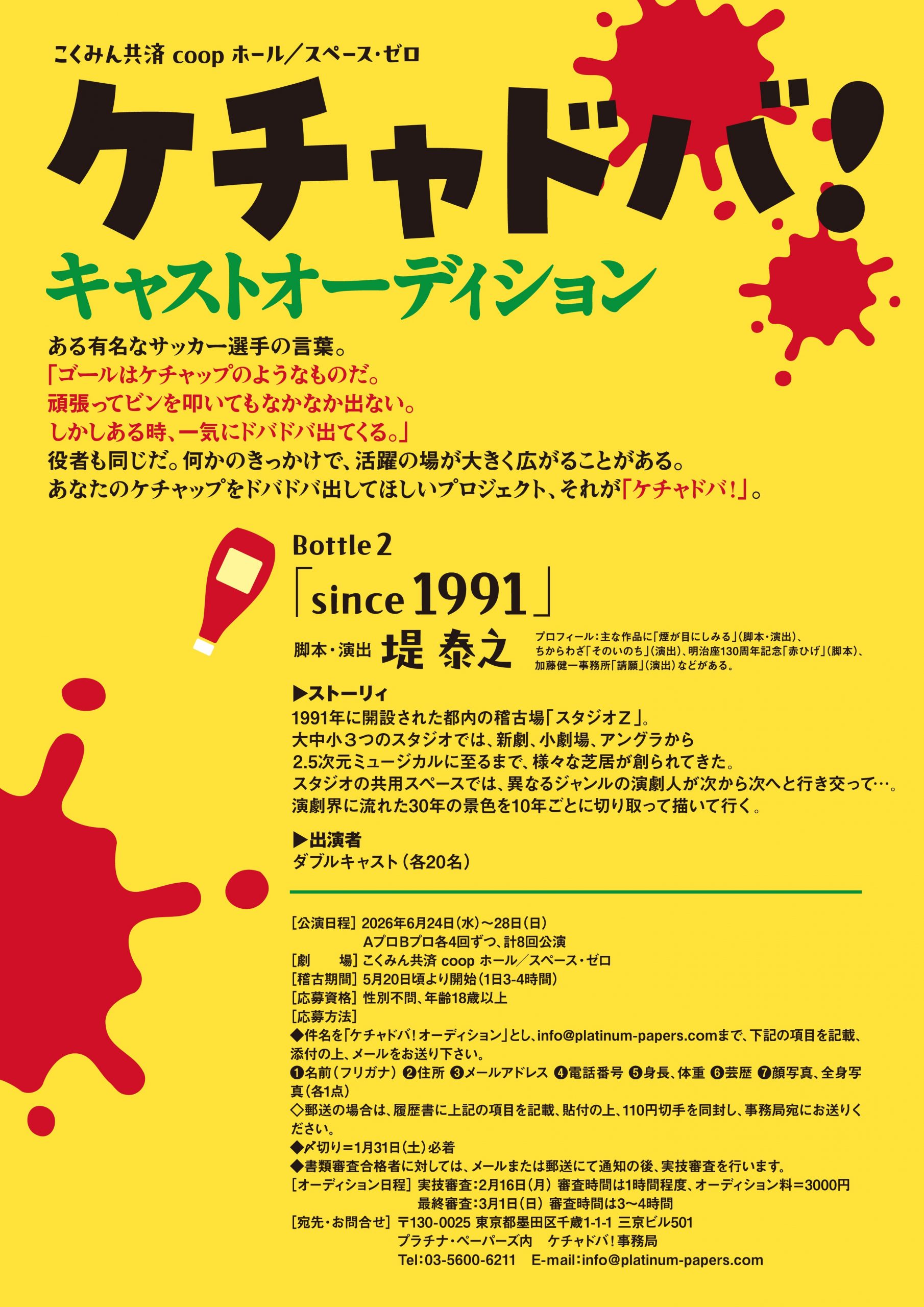 ◆件名を「ケチャドバ!オーディション」とし、info@platinum-papers.comまで、